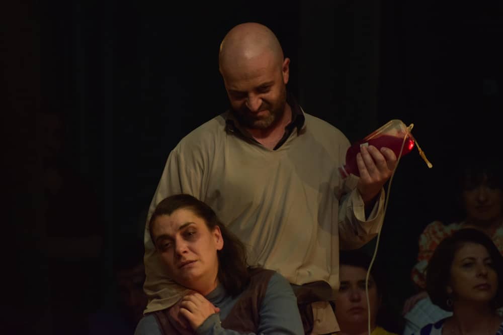 Катарзата се постигнува во додадената последна сцена, бидејќи Ријани повторно (како во случајот на „Три сестри“ од Чехов), не ја затвора претставата оставајќи ги ликовите и гледачите во почетната точка, без никаков одговор, односно им креира имагинативен простор за задавање прашања и барање одговори. Така, додека Василиса и мртвиот Костиљов понатаму ги набљудуваме како надворешни ликови, средишниот дел, односно некогашната дневна/спална соба и бојно поле, се претвора во романтичен воз на носталгични индивидуи кои смирено тргнуваат на некакво патување, на кои им се придружува Ана, водена од Лука како привиденија. Помислувајќи како Ријани во оваа претстава реализмот го поврзува со филмот и грчката трагедија, се појавува прашањето и сомнежот дека, всушност, романтичниот воз е коработ кој овие смртници ги носи кон Хадес (Адот), а Лука станува посредникот помеѓу двата света. Како и, дека ослободителното вознесување на Актерката во висините, е заминувањето на нејзината душа во Рајот, а изворното самоубиство е пресликано во доброволното исклучување на сопственото тело од постојаната инфузија.