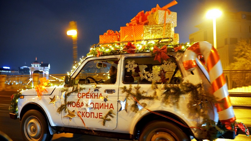 Бела „лада нива“ натоварена со новогодишни пакетчиња, зеленило, украси и светилки вчера кружеше низ Скопје. Под мотото „Среќна Нова Година Скопје“ креативците од Центарот за современи уметности се обидоа на граѓаните на Скопје да им го доловат новогодишниот дух и новогодишната магија и да ги израдуваат децата од ранливите категории деца на улица со новогодишни пакетчиња и слични подароци.