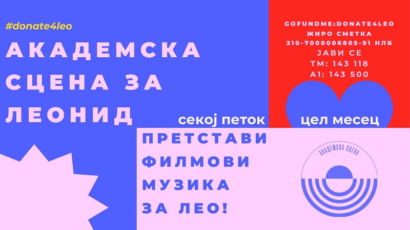 – Нè допре приказната на овој млад човек кој има постигнато толку многу за образованитео во Македонија. Затоа решивме да ја организраме донаторската акција. На претставите и проекциите ќе има кутија за донации. Обично претставите ни се многу посетени, очекуваме и овој месец да биде исто. Сезоната ја отвораме во петок. Дојдете и донирајте за Лео – вели Ристески.
