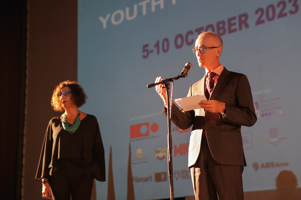 – Тогаш глетката од бината беше многу поинаква. Среќен сум што гледам полно среќни лица со големи очекувања и соништа. Годинава славиме 30 години од воспоставувањето на дипломатските односи помеѓу Италија и Северна Македонија, и по тој повод имаме серија настани од најразлични области – литература, музика, гастрономија… Без сомнеж, една од тие области е филмот. Филмот го славиме преку Џифони, за што сме му благодарни на Клаудио Губитози, кој пред 53 години го креирал фестивалот, а пред 11 години го избрал Скопје за да го прошири и надвор од Италија. Амбасадата ќе ја организира и традиционалната Недела на италијанскиот филм на пролет, а во ноември ќе имаме ревија филмови од фестивалот во Венеција во киното „Синеплекс“. Јас сум убеден сме дека уметноста и култураат имаат голем потенцијал и затоа со задоволство го поддржуваме Џифони кој ги поттикнува младите на креативност и критичко размислување – посочи Силвестри.