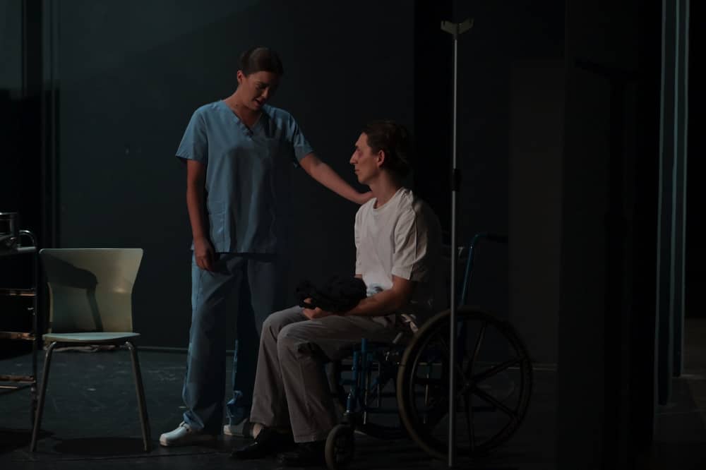 Следна клучна одлика на добар кастинг и продукциска работа е гласот и ритамот на говорот на одбраните и режираните актери. Токму тонот, дикцијата и темпото влијаат врз тоа како публиката го доживува дијалогот и драматуршката структура, затоа беше мачно, колку и да делуваше симпатично на почетокот, да се слуша лошиот македонски на Стоименовски (а одлично пеење), како и чудното зборување и „стенкање“ на многу солидно изградениот и впечатлив лик на Теодосиева како Харпер.