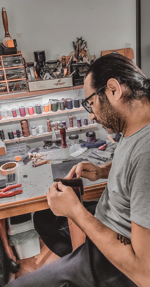 По прележан ковид, некаде кон крајот на летото господово 2021, едно попладне скролајќи на „Фејсбук“ без никаква причина, ми излезе реклама: „Како да направиш рачно паричник од кожа“. Веднаш го кликнав линкот, сосема несвесен за „последиците“… Се отвори страница со некои основни, почетни чекори како се изработува еден паричник. Се изначитав на англиски, имаше и фотографии од процесот на изработка и си помислив: „Ова e добар вентил за ново хоби. Имам парчиња кожа во дуќан кај татко ми, кој е тапетар веќе 35 години. Ќе се обидам…“