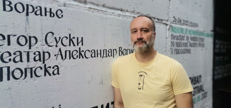 – Во моментов работам на претставата „Брод за кукли“ од Милена Марковиќ во режија на Кокан Младеновиќ гостин од Србија по втор пат во Народниот Театар Битола. Уште еден уникатен режисер, кој според мене, основата на својот театар ја има во „класичниот театар“, но сето тоа изместено во една екстремна гротеска, со многу сериозен пристап кон хуморот, црниот хумор особено, но во исто време навистина нежно и кршливо. Како од стакло.