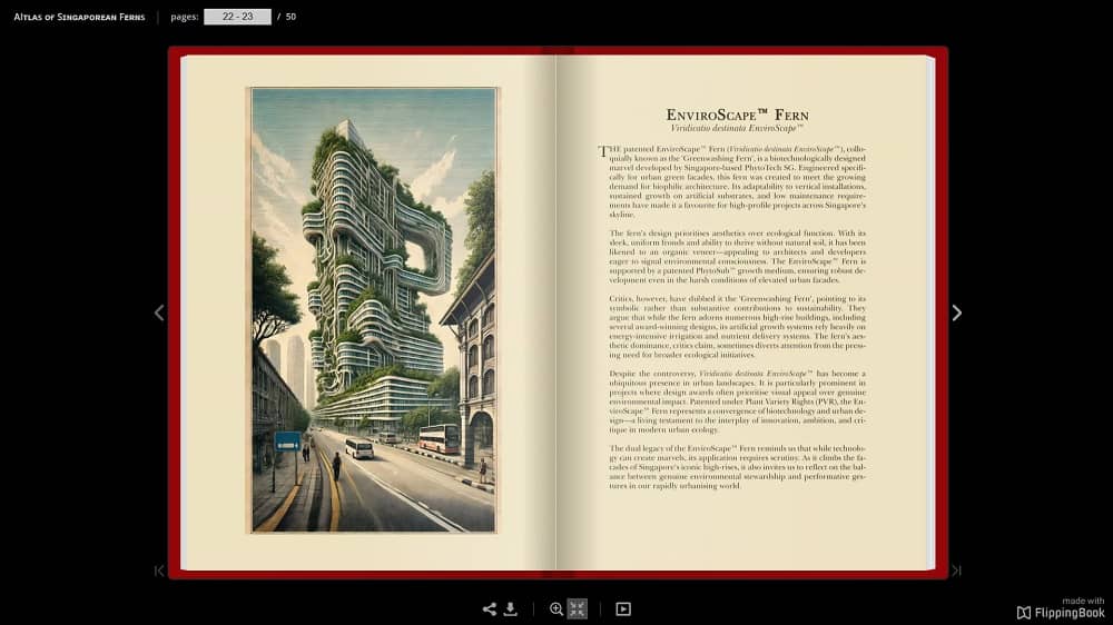 Потоа Сингапур – сосема поинаков контекст, хипер-урбанизиран, каде што се обидуваат да ја зауздаат природата, и таа да постои само како внимателно куриран спектакл. Но таму открив специфични микроклими и рудерални растенија кои пркосат на тој наметнат ред, или тропски епифитни папрати што растат на дрвја долж улиците, цели заедници на растенија во меѓусебна симбиоза. Тогаш почнав да размислувам за тоа што значи солидарност во природата – и како тоа може да се преведе во човечки општествени односи.