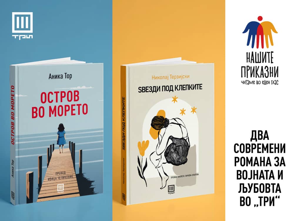 „Остров во морето“ од шведската авторка Аника Тор и „Ѕвезди под клепките“ од бугарскиот современ автор Николај Терзијски се два нови романи во издание на ТРИ. Од Издавачкиот центар посочуваат дека романите на Тор и Терзијски побудуваат емпатија во овие отуѓени времиња, нудејќи подлабоко разбирање на луѓето од различни потекла и отворајќи дијалог кој ги зема предвид грешките од минатото, постапките во сегашноста и непредвидливоста на иднината.