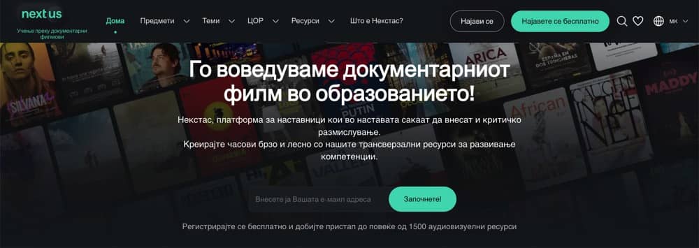 Оваа образовна платформа на наставниците и учениците им нуди бесплатен пристап до динамична дигитална средина која содржи обемна колекција на документарни филмови од целиот свет, придружени со помошни материјали во насока на наставните планови на речиси секој предмет во средното образование. „Некстас“ е достапна на неколку јазици, отсега и на македонски јазик, а користењето на оваа платформа како ново аудиовизуелно средство е одобрено од Бирото за развој на образованието и Министерството за образование и наука на РСМ.