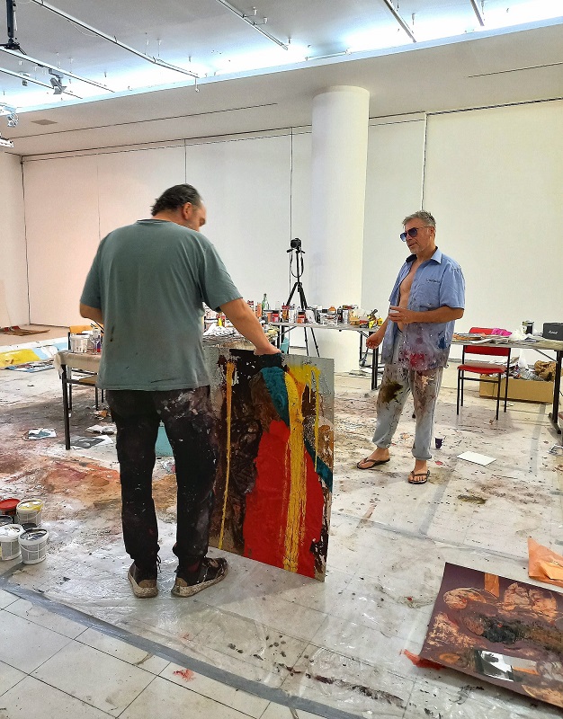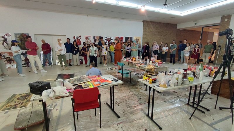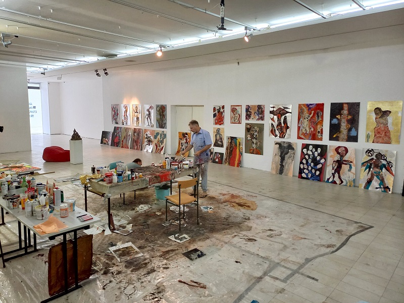 – Возбудливо беше да се посведочи нивниот колаборативен процес на работа, насловен како „Отворено студио“ во чии рамки уметниците ги создадоа делата кои ќе бидат изложени на претстојната изложба во четврток. Станува збор за 30-ина уметнички слики на картон со акрилна боја и колажи од стари историски книги, мапи, карти, атласи, постери, образовни графикони… – велат од МСУ.