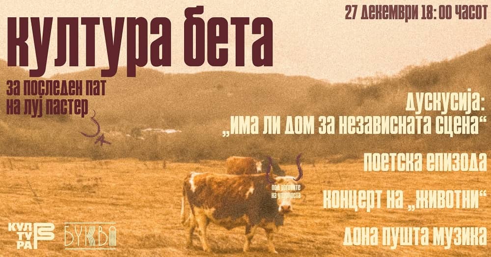 „Под роговите на упорноста“ е насловен последниот настан со кој ќе биде затворена кафе-книжарницата „Буква“ која функционираше повеќе години на аголот наспроти Македонското собрание, покрај домот на АРМ во Скопје. Настанот го организира „Култура бета“, а во себе обединува повеќе сегменти со кои ќе се заокружи циклусот на настани преку кои здружението го развиваше токму во „Буква“, која меѓу другото служеше и како своевиден културен центар.