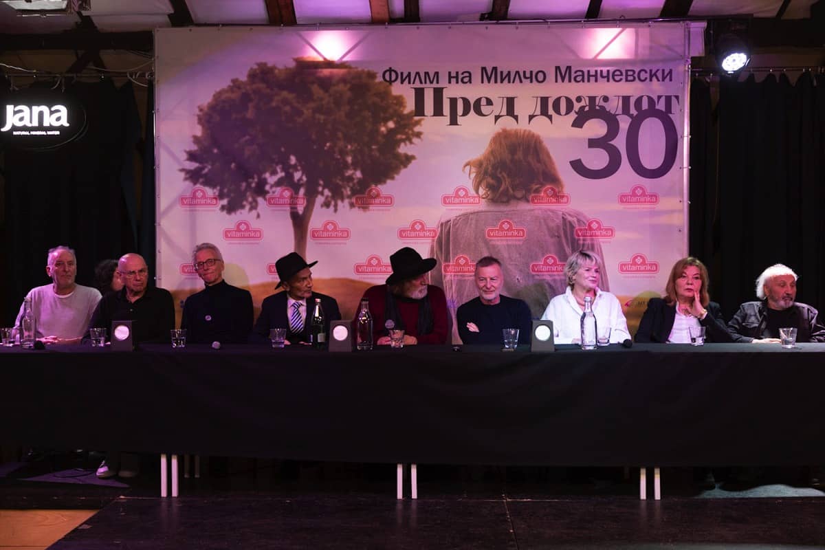 Пред вечерашната златна гала премиера на нашиот светски класик „Пред дождот“, денеска на средба со медиумите се обратија учесниците во филмот. Странските гости од екипата дојдоа од Лондон, Париз и Хрватска – актерот Раде Шербеџија, дизајнерот на продукција и оскаровец Дејвид Манс, директорот на фотографија Мануел Теран, монтажерот Николас Гастер – и дел од македонската екипа Петар Мирчевски, Силвија Стојановска, Сузана Киранџиска, Катерина Коцевска, Златко Ориѓански и режисерот Милчо Манчевски.