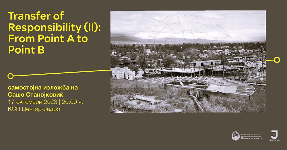 Во КСП „Центар-Јадро“ во Скопје вечерва во 20 часот ќе биде отворена изложбата „Префрлање на одговорноста (II): Од точка А до точка Б“ од Сашо Станојковиќ. Проектот е прониклива студија на случај за уметничко истражување во која уметникот се осврнува на спорните спомени, колективната амнезија и спомените. Уметникот размислува за мотивите зад неконзистентната – и честопати неуспешната – мемориска политика која ги овековечува пропуштените можности за извинување и отстапува место за разни изливи на омраза, антисемитизам и други форми на расизам.