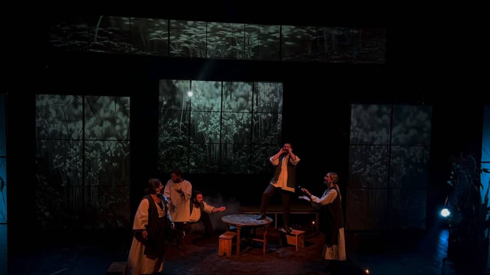 Во претставата играат: Стрезо Стаматовски како Митре, Филип Кипровски во улогата на Анѓеле, Марија Новак ја толкува Мара, Адријана Билаловиќ – Тодороска ја игра улогата на Ката, а Никола Тодороски го игра Софре. Сцената, костимите и видеодизајнот се на Сергеј Светозарев, а музиката на Димитар Андоновски.