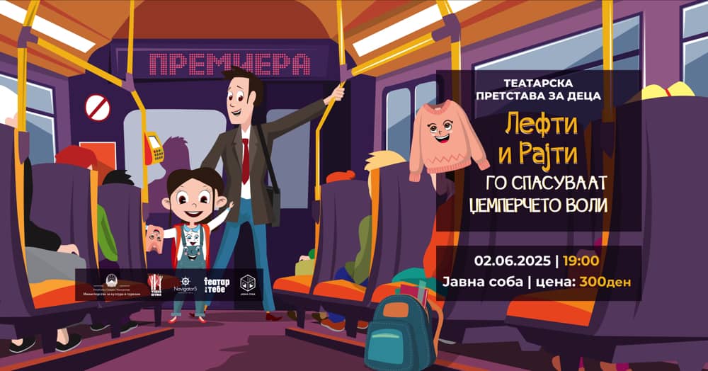 На поткровјето на „Јавна соба“ утревечер во 19 часот ќе се одржи премиерата на новата детска театарска претстава „Лефти и Рајти го спасуваат џемперчето Воли“. Претставата која е поддржана од Министерството за култура и туризам е базирана на втората сликовница од серијата „Приказни за облеките“ на македонската авторка Наташа Дукоска.