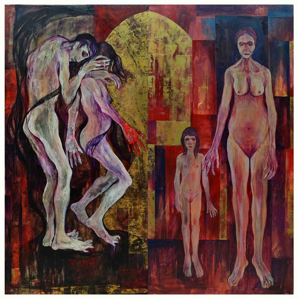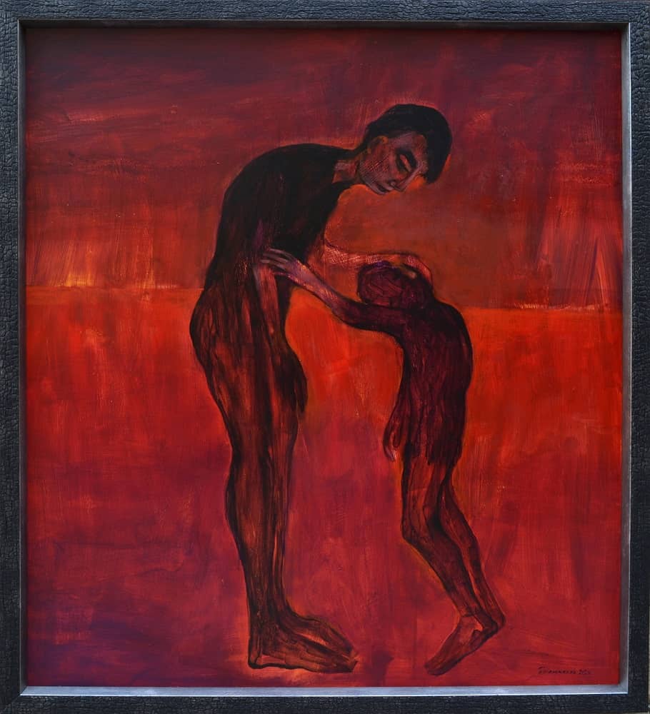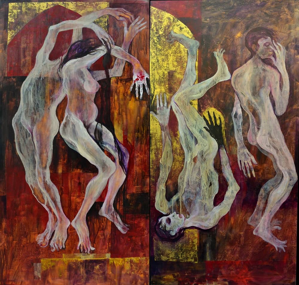 Освртот ќе го почнам со сликата „Агонија на животот“. Претставени се четири фигури одлево надесно. Фигурите на левата страна од диптихот се на маж и на жена. Позицијата на телата, а особено поставеноста на рацете потсетуваат на библиската сцена кога нашите прародители се изгонети од едемската градина по падот во грев. Лицата не може да им се видат што асоцира на срам и на каење за стореното зашто со зачекорувањето надвор од градината на невиноста, човештвото веднаш ќе се соочи со својата смртност, распадливост, страв и агонија. Адам и Ева, оние што требало да бидат таткото и мајката на живите, се проколнати. На потомството на кое ќе го зачнат и ќе му дадат живот воедно го осудуваат на смрт. Срамот за тоа дека се голи, но не и невини, ги воведува во агонијата на животот кој е секогаш поразен од смртта. Свесно или не, Пијанманов на десната страна на диптихот ги насликал првите два сина на Адам и на Ева, Каин и Авел. Авел е мртов и превртен наопаку додека Каин си го крие лицето и очајно извикува, „Секој што ќе ме сретне, може да ме убие.“ Пред очите на публиката на диптихот се одвива драмата која од памтивек се повторува до денес. Секое убиство е „братоубиство“, а секоја војна е братоубиствена.