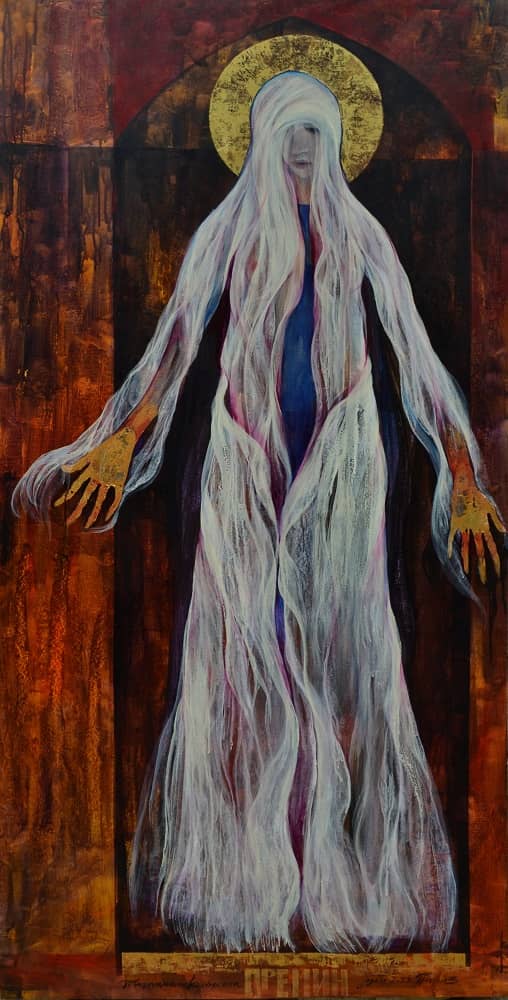 Агонијата на животот не е ништо друго, туку подготовка за „Премин“. Оваа слика како да излегла од опусот на Пијанманов познат како „Мироносици“. На нив тој насликал серија дела на жени во долги бели одори. Според златниот „ореол“ не може да не се заклучи дека на оваа жена треба да се гледа како на една од светителките во христијанското предание. Да се стане светија според ова предание не значи првенствено да се здобие со статус на безгрешност, што секако е точно, туку пред сè се работи за здобивање на „Боголикост“ особено изразена како „Христоликост“.