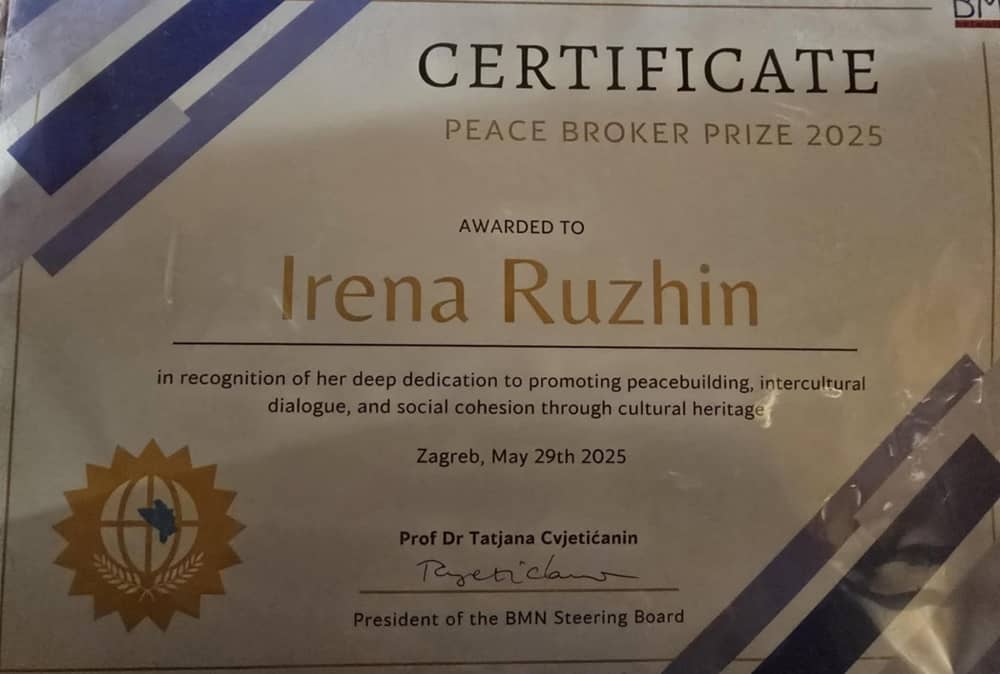 „Најдраги ми се работилниците со деца со попреченост, кога ќе забележам дека во еден миг чувствуваат среќа што се во музејот и сакаат повторно да се вратат, или кога лице со оштетен вид ќе ми каже дека успеа да „види“ нешто од презентираното со наши различни пристапи“, вели д-р Ирена Ружин, менаџер на проектите за пристапност и инклузија, алумни на Амбасада на САД, на Британскиот совет, член на Извршниот одбор на Балканската музејска мрежа, Балканската музејска група за пристапност, претставник од Македонија и членува во многу меѓународни тела и одбори. Таа ја доби наградата Peace Broker Prize за Западен Балкан што ја доделува Мрежата на балкански музеи.
