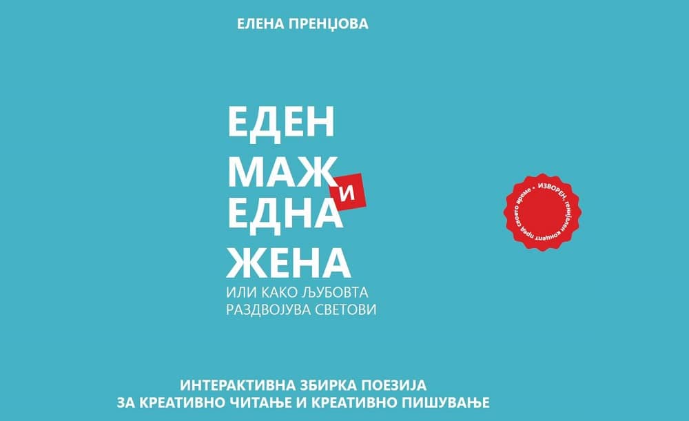 Во градината на покривот на Домот на култура „Кочо Рацин“ во Скопје вечерва во 19 часот ќе се одржи промоција на интерактивната збирка поезија за креативно читање и креативно пишување „Еден маж и една жена или како љубовта раздвојува светови“ од Елена Пренџова. Промотор на книгата е Владимир Мартиновски.