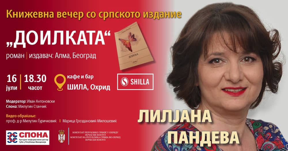 Српското издание на романот „Доилката“ на авторката Лилјана Пандева ќе биде промовирано вечерва во 18.30 часот во кафе-бар „Шила“ во Охрид. Настанот го организира Српскиот културно-информативен центар „Спона“. Оваа книжевна вечер е дел од циклусот книжевни средби и работилници „Паралели и синтези: Рецепцијата на современата македонска книжевност“, којшто Српскиот културно-информативен центар „Спона“ го почна во февруари оваа година, а во фокусот се дела од современи македонски автори што изминативе години се објавени и во Србија во превод на српски јазик. Настаните во рамките на овој циклус книжевни средби и работилници за првпат се одржуваат надвор од Скопје.