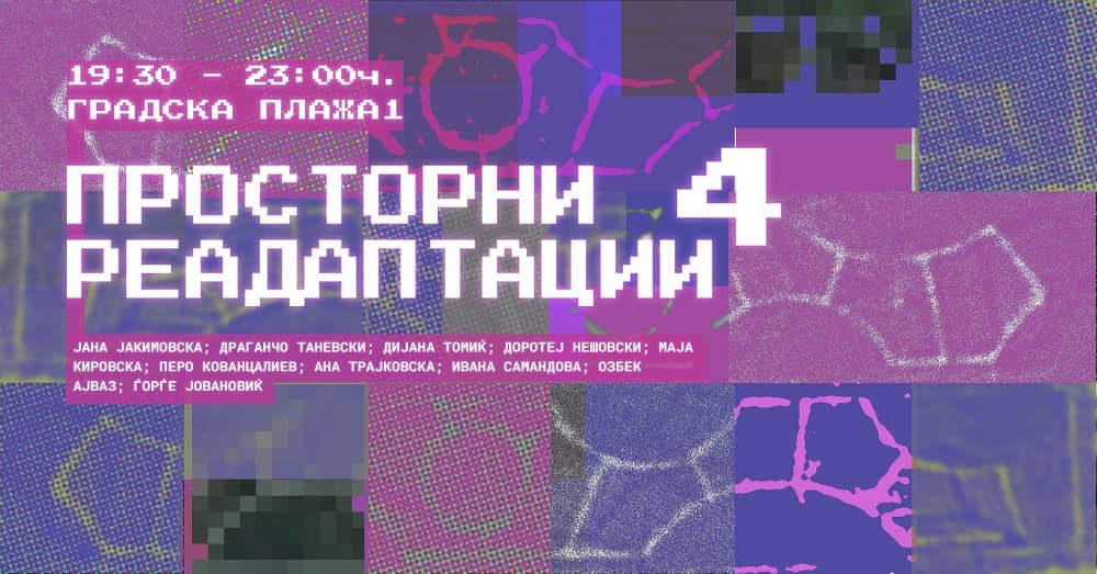 На скопската плажа (на Кејот на Вардар) утревечер во 19.30 часот ќе биде отворена едновечерната изложба „Просторни реадаптации 4“. Коципирана како место за културна практика, група автори ќе ги претстават своите мултидисциплинарни и инвентивни истражувања ни кои го трансформираат отворениот простор на некогашната скопска плажа, преполнувајќи го со разновидни концепти кои нудат свежи перспективи и давајќи му нова смисла.