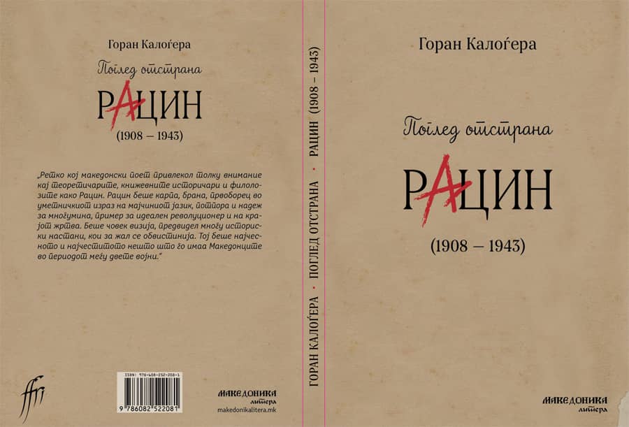 „Рацин е мојот научен предизвик за кого, уште како млад научник, се обидов детално да го реконструирам престојот во Хрватска и неговите дружења со истакнати антифашисти, писатели, уметници и политички другари“, вели хрватскиот лингвист и македонист Горан Калоѓера во уводот на книгата „Поглед отстрана. Рацин (1908 – 1943)“. Книгата ќе биде промовирана вечерва во 19 часот, во изложбениот салон „Империјал 2“ на Културно-информативниот центар во Скопје. Превод од хрватски на македонски јазик е на Славчо Ковилоски, кој е и автор на предговорот, а изданието е на „Македоника литера“. За книгата ќе зборуваат проф. д-р Славчо Ковилоски и Нове Цветаноски, уредник на изданието.