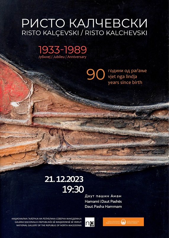 Во Даут-пашиниот амам во Скопје вечерва во 19.30 часот ќе биде отворена изложбата „Јубилеј 90 години од раѓањето на Ристо Калчевски (1933-1989)“. Одбележувајќи го јубилејот на Калчевски, еден од најзначајните толкувачи на енформелната практика во македонската ликовна уметност, целта е интегрално презентирање на неговото богато творештво. Куратори на изложбата се Маја Неделкоска-Брзанова, кустос-советник и Маја Чанкуловска-Михајловска, виш кустос во Национлната галерија на Македонија.
