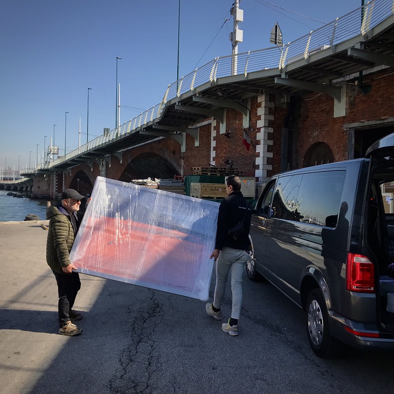 Тој е задоволен од просторот во Скуола деи Ланери, но треба да направат делото да функционира во тој простор. Делата се веќе пристигнати и во просторот се прават последните корекции, местење на проекциите, осветлување на фотографиите и слично.