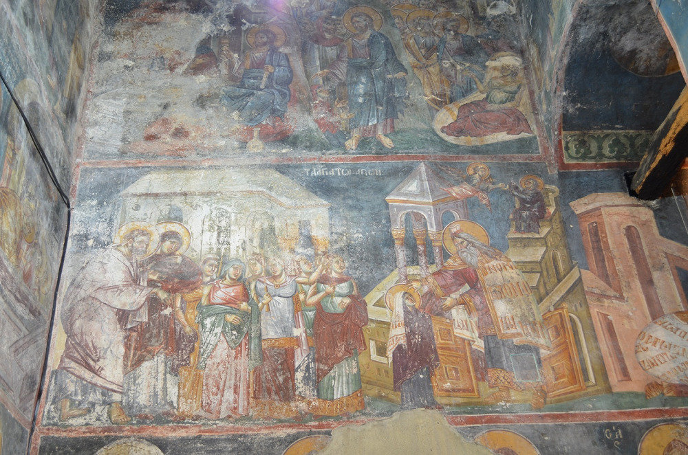 Текстот за црквата „Св. Богородица Перивлепта“ („Св. Климент“) го пишував вчера, на празникот Воведение Богородичино, познат и како Пречиста. Воведението Богородичино е насликано во многу средновековни цркви, вклучително и во Перивлепта. На ова извонредно ликовно остварување, дело на познатите мајстори Михајло и Евтихиј (1295 г.), видливи се значителни оштетувања од наталожени калцифицирани соли. Тие, како скрама ја замаглуваат сцената и ја намалуваат видливоста на прекрасните ликови на св. Јоаким и св. Ана, родителите на Богородица и на девојките кои ја придружуваат при воведувањето во храмот.