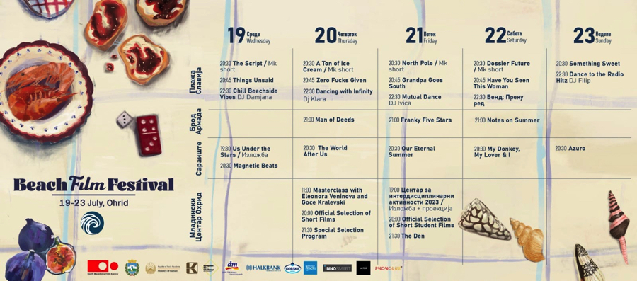 – Од првата година имаме поддршка од Агенцијата за филм, која ги поддржува сите наши идеи, потоа град Охрид, со којшто имаме многу години успешна соработка и веќе сме домашни таму и од годинава ќе потпишеме официјален меморандум и Beach Film Festival ќе се преименува во Охрид филм фестивал, Министерство за култура, исто така и Кинотеката, Француски институт, European Film Challenge, а секако ни е важна и соработката со комерцијални спонзори како „Халкбанк“, коишто со години нè поддржуваат и се залагаат за развој на културата, ДМ дрогерии, коишто со својот летен асортиман совршено ја заокружуваат ова летна приказна и многу други – велат организаторите.