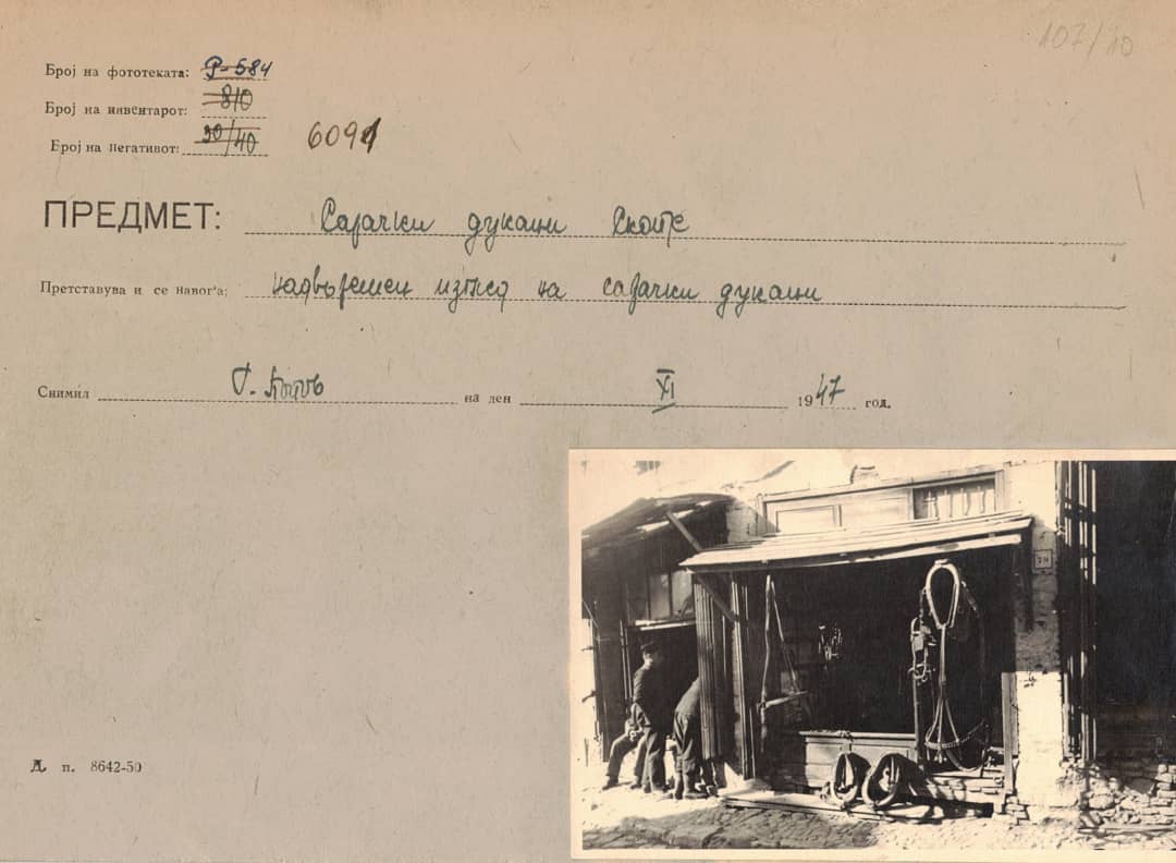 „Како и секој занает, така и сарачите при изработка на своите производи, користеле посебен алат: кресо за седење и работа, игла и шило за прободување, нож и ножици, турпија за острење на алатот, дрвена шипка за полнење со памук, калап за гланцирање, рачна машина за сечење на каишчиња од кожа и др“, велат велат кустосите од Музејот на Република Северена Македонија, со чија соработка пренесуваме содржини за да ја претставиме богатата материјална и духовна култура на македонскиот народ и музеолошката дејност.