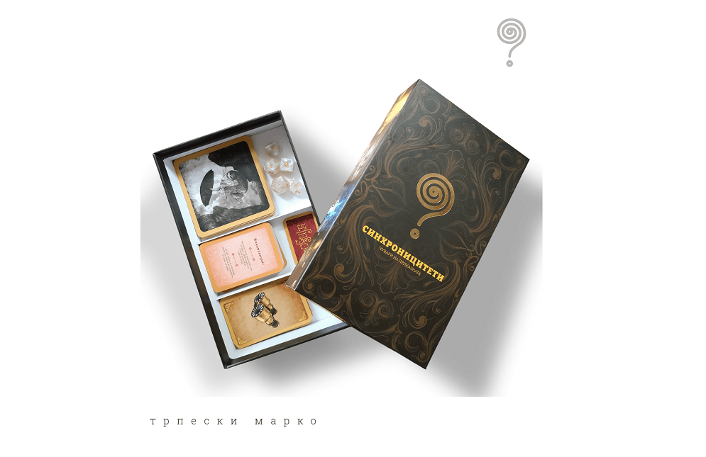 Поттикнување на креативно пишување е примарната цел на „Синхроницитети – Чувари на приказната“, новото дело на визуелниот уметник Марко Трпески. Станува збор за друштвена или осаменичка игра во надреалистички манир и препознатлив стил на Трпески, која интуитивно ја олеснува артикулацијата на потсвесните текови на оној што ќе се осмели да (ја) игра.