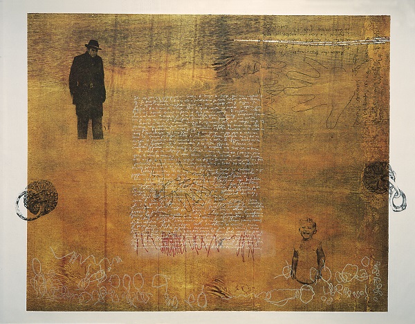 „Реминисцениција I“, комбинирани техники, 80х110см., 1998