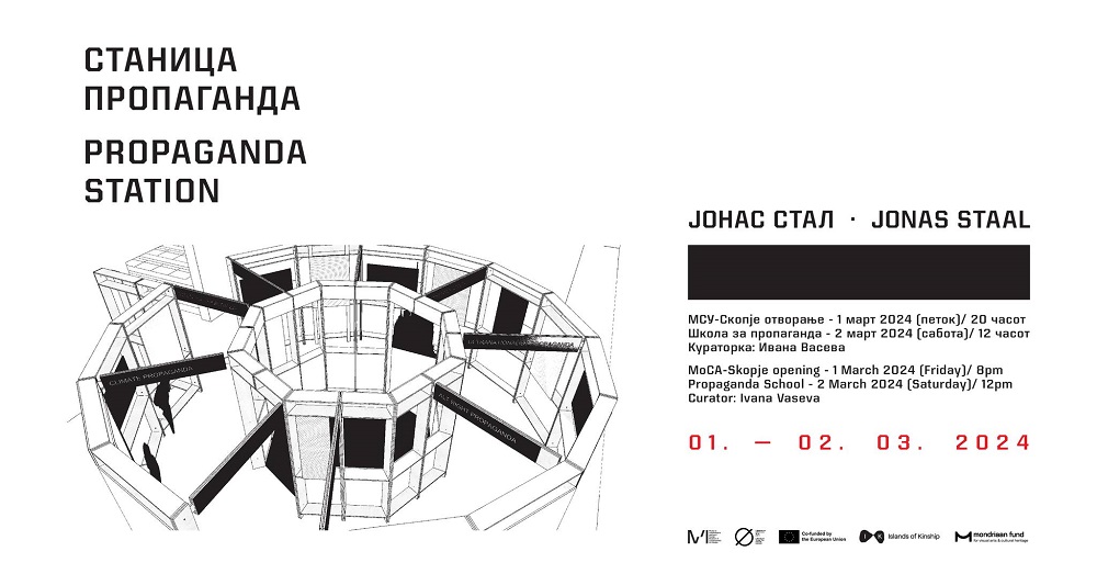 Во Музејот на современата уметност во Скопје вечерва во 20 часот ќе биде отворена изложбата „Станица пропаганда“ од Јонас Стал. Куратор на проектот е Ивана Васева. Станува збор за нова комплексна инсталација и програма во живо на холандскиот уметник, која ја истражува врската на уметноста и културата со доминантните форми на современата пропаганда, како и алатките и можностите на формите на (контра)пропаганда кои произлегуваат од еманципаторските грасрут и ослободителни движења.