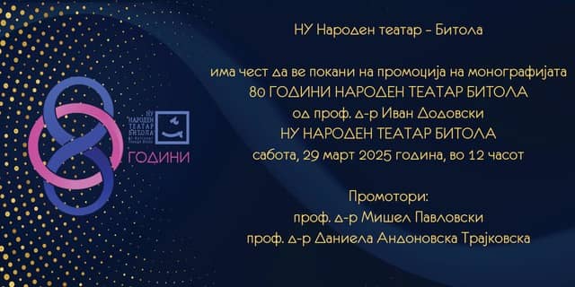 Монографијата „80 години Народен театар Битола“ од д-р Иван Додовски ќе биде промовирана задутре (29 март) во 12 часот во …
