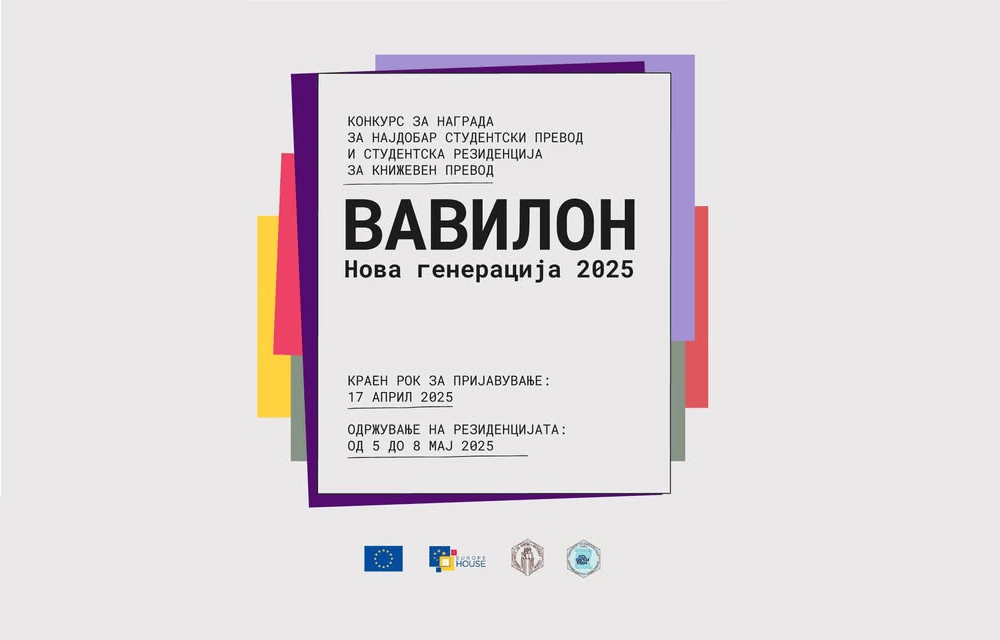 Конкурс за награда за најдобар студентски превод и студентска резиденција за книжевен превод „Вавилон – Нова генерација“ објавија Делегацијата на …