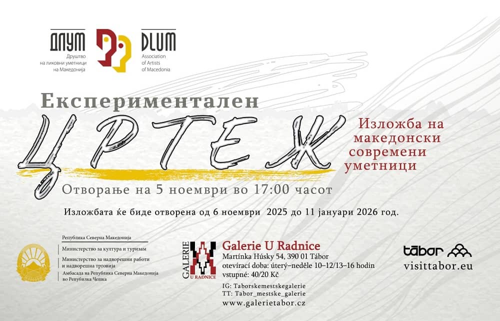 Во чешкиот град Табор денеска во 17 часот ќе биде отворена изложбата „Експериментален цртеж“ на Друштво на ликовните уметници на …