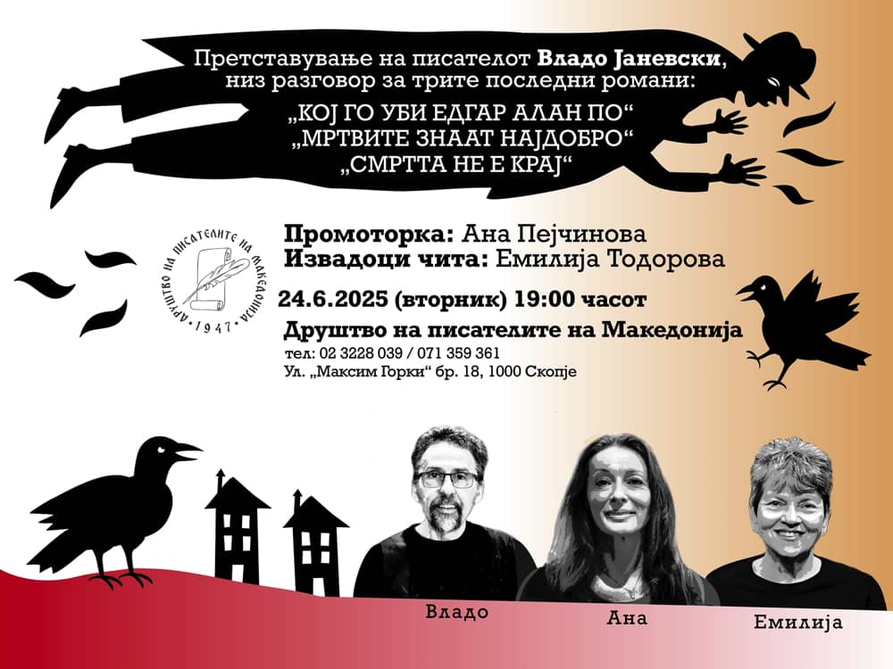 Низ разговор за трите негови последни романи, утревечер во 19 часот ќе биде претставен писателот, поет, сликар и стрип-автор Владо …