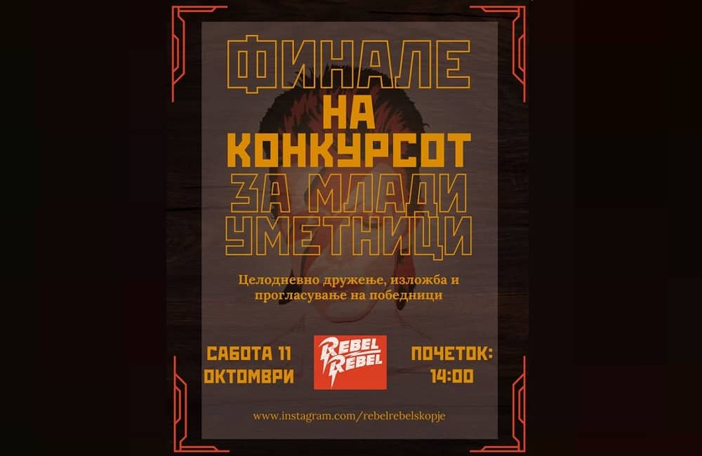 Во барот „Rebel Rebel“ во Скопје денеска во 14 часот ќе се одржи финале на конкурсот за млади уметници. Конкурсот …
