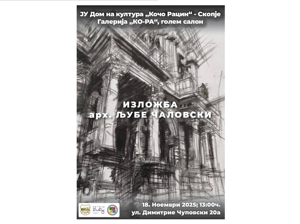 Самостојна изложба на цртежи од архитектот Љубе Чаловски ќе биде отворена денеска во 13 часот во галеријата „Ко-Ра“ про Домот …