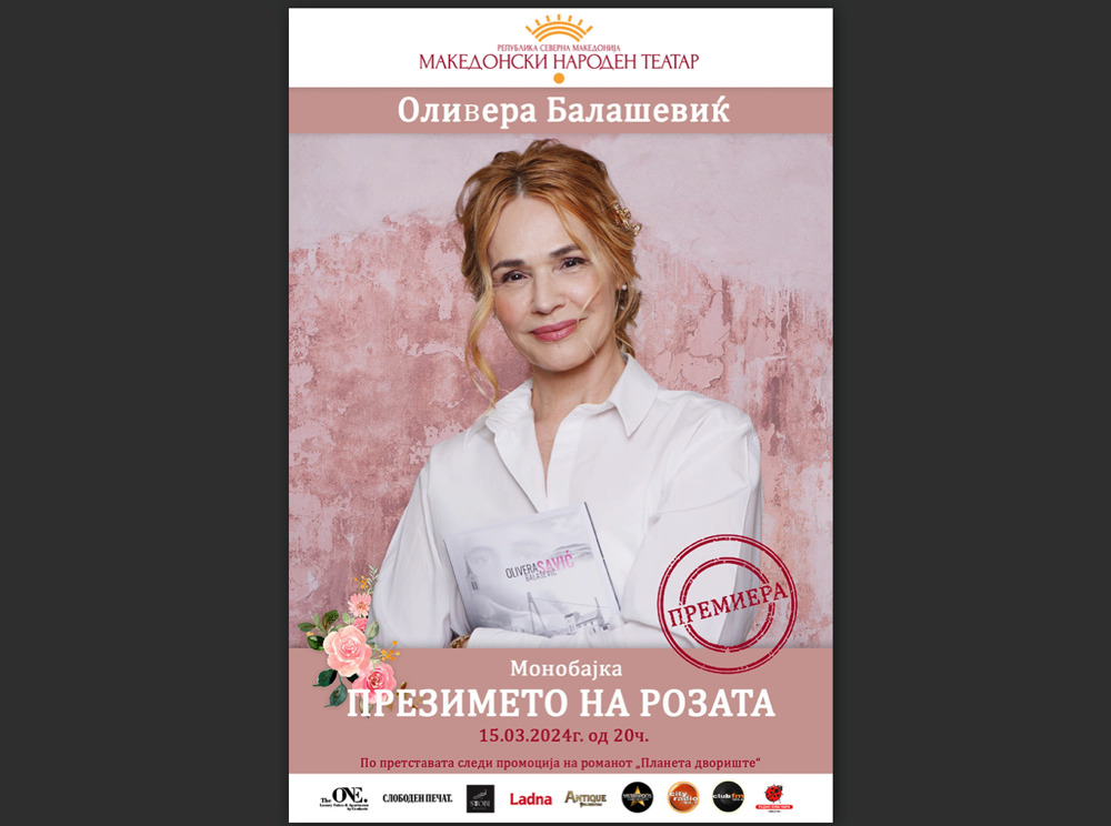На големата сцена во Македонскиот народен театар на 15 март ќе гостува монобајката „Презимето на розата“, во изведба и режија …