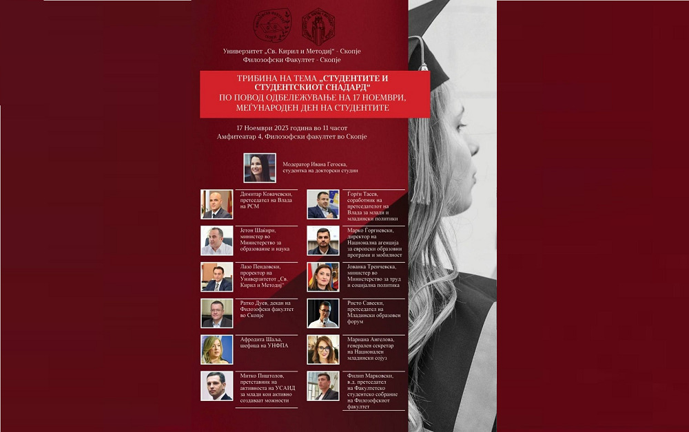 „Студентите и студентскиот стандард“ е насловот на трибината која денеска во 11 часот ќе се одржи на Филозофскиот факултет во …