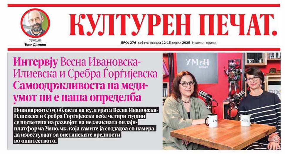 „Новинарството од областа на културата е специфична професија што изискува голема посветеност. Следење на културните настани, со флексибилно работно време, …