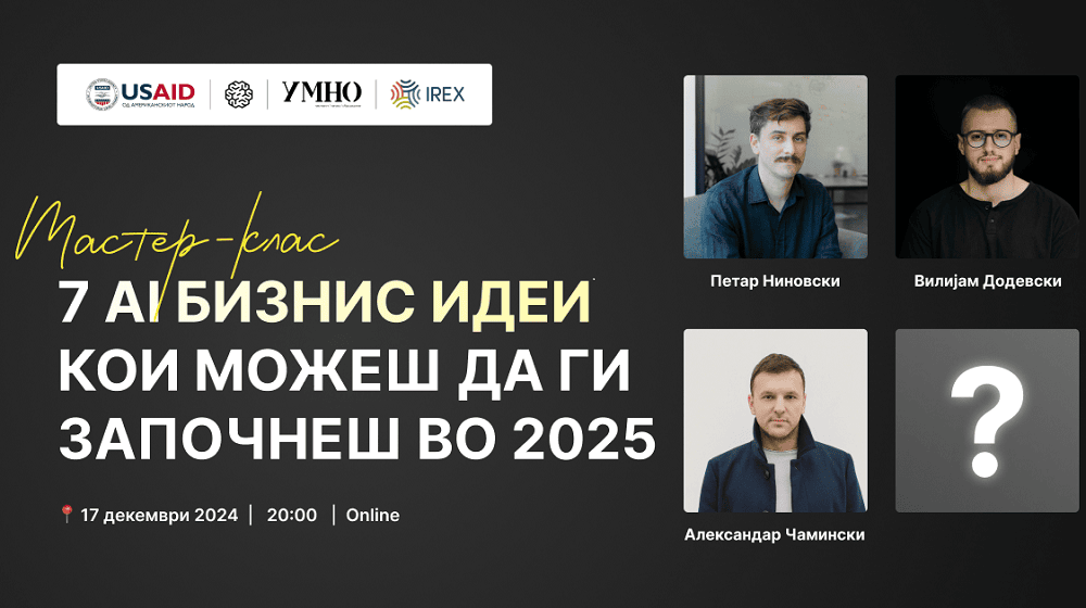 Мастер-клас: 7 ВИ бизнис идеи и како да дојдете до првиот клиент?