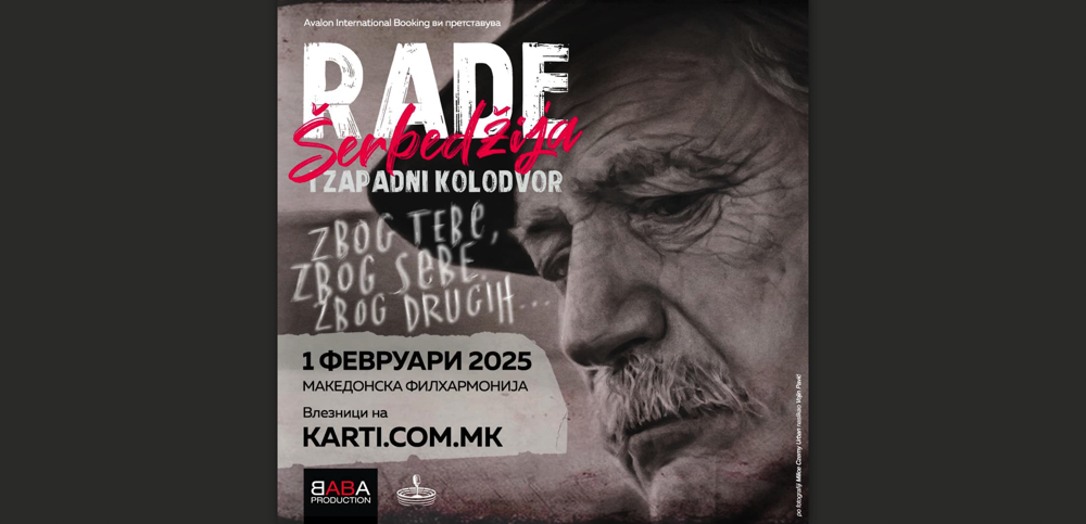 Шансониерот и актер со холивудска славаа, Раде Шербеџија на 1 февруари во Македонската филхармонија ќе гостува во Скопје со проектот …
