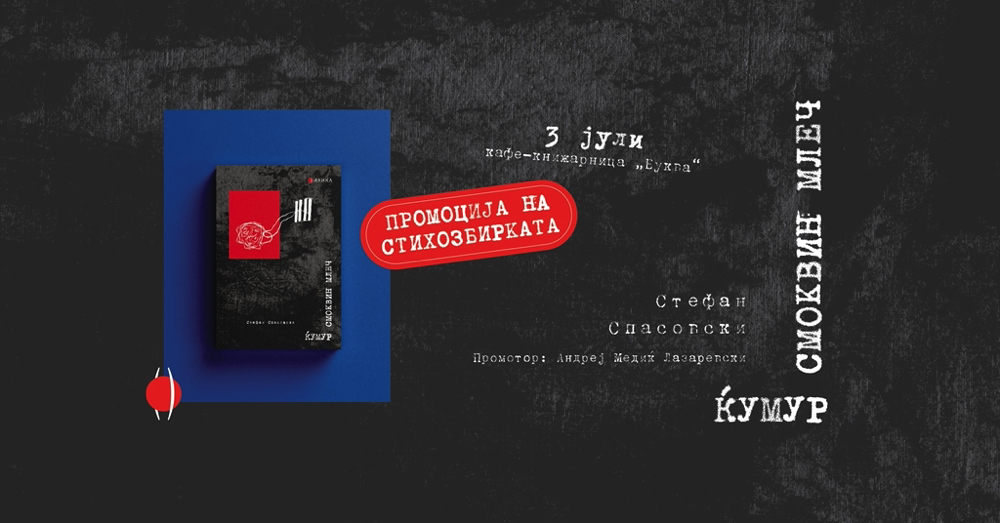 Дебитантската поетска збирка на Стефан Спасовски, „Ќумур смоквин млеч“ ќе биде промовирана вечерва во 20 часот во кафе-книжарницата „Буква“ во …