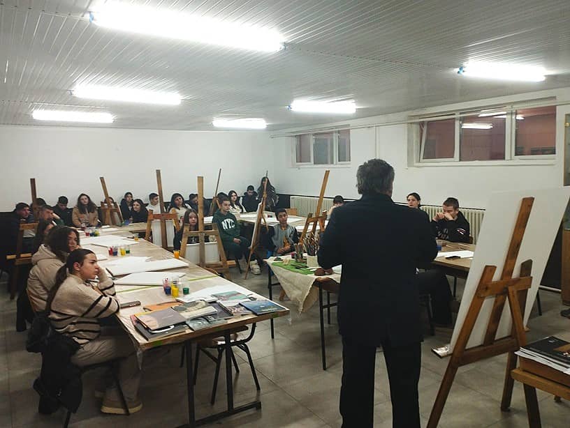 Вработени во галеријата пред група ученици држеа предавање за животот и творештвото на некој од големите претставници на македонската модерна …