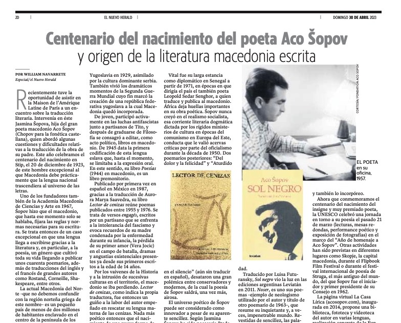 По повод 100 години од раѓањето на Ацо Шопов, дневниот весник „Ел Нуево Хералд“ од Мајами, САД, објави статија посветена …