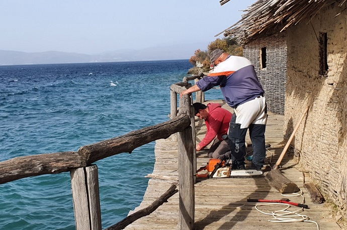 Експерти од Заводот за заштита на спомениците на културата и музеј од Охрид вршат санација на реконструираните праисториски објекти од …