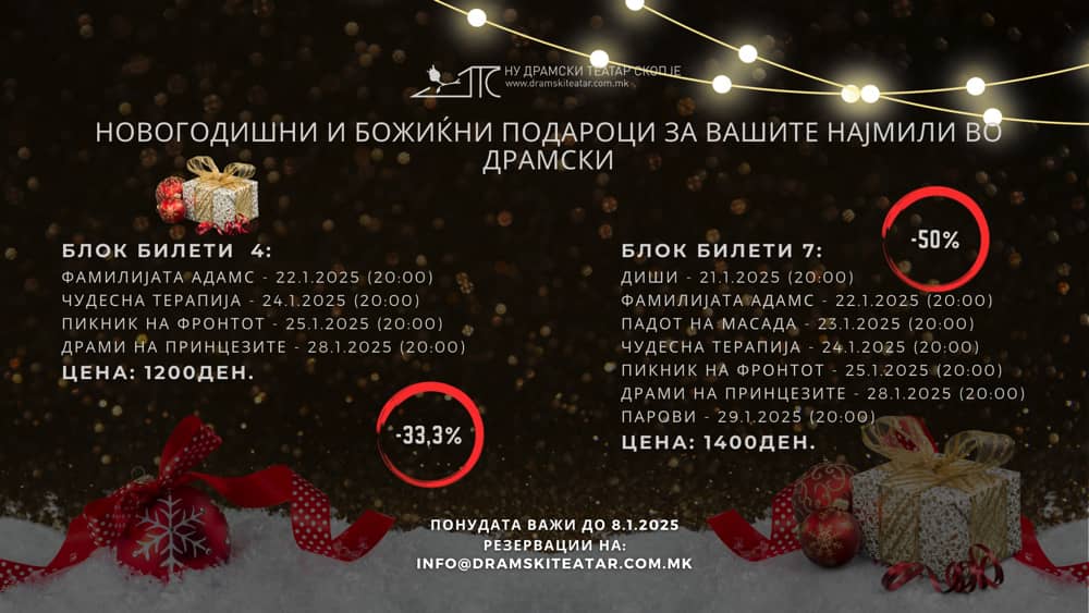 Драмскиот театар од Скопје за својата публика подготви празнични блок билети за репертоарот во месец јануари. Драмски ги отвора вратите …