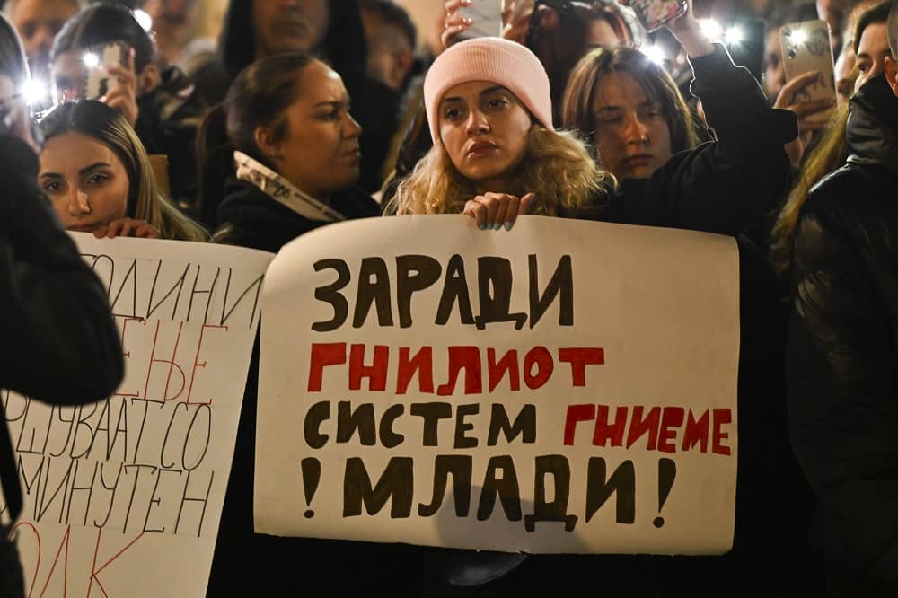 Горите во пеколот како што тие гореа во вашата шупа, Заради гнилиот систем гниеме млади, Рекордери во денови на жалост, Жртви на корупцијата, Бидете ангели на небото, како што бевте на земјата беа дел од транспарентите со кои младите немо, безгласно ја искажаа својата болка. „Никогаш да не се повтори. Гушнете ги своите најблиски“ рекоа од движењето „Кој е следен?“ на крајот на едночасовниот собир.