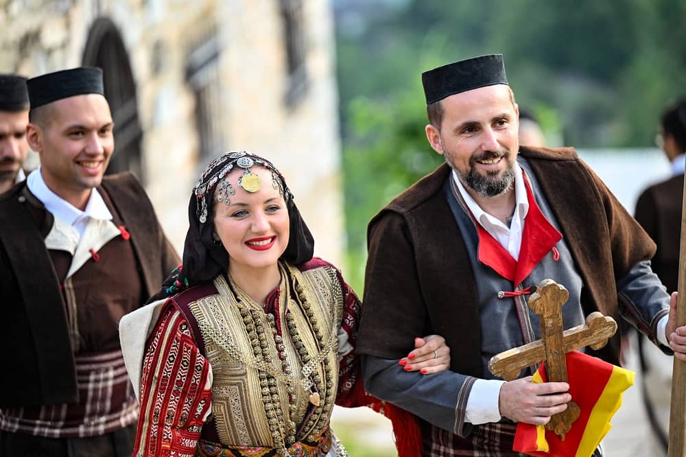 Со традиционалните обичаи младенците Стефана Димитрова и Даријан Кочоски викендов стапија во брак во рамките на манифестацијата „Галичка свадба“. Свадбарските обичаи почнаа со обредот „фрлање три пушки“ и со „виорење на свадбениот бајрак“. Националниот ансамбл „Танец“ го изведе „Тешкото“, препознатливото оро за печалбарскиот Галичник. Погледнете ги фотографиите од впечатливиот настан.