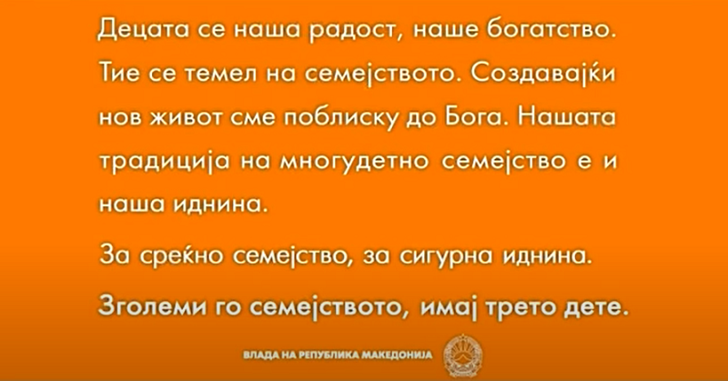 – Ова се претежно политички определби на конзерватините политичари. Македонија не е опфатена, бидејќи веќе неколку години не се спроведува оваа политика кај нас. Сепак, има податоци дека огромни пари беа потрошни на рекламно кампањи. Оваа политика во Македонија 10 години беше на сила, а бројот на трети деца е незначително зголемен. Пред 2009 година имало тренд на опаѓање на бројот на трети деца, па со политиката на трето дете малку е зголемен, од минус станал плус. Но, од оваа мерка се родени помеѓу 1000 и 2000 деца и таа се однесува исклучиво на трето (или четврто) дете. Не влијаела на прво или на второ дете – објаснува Фидановски.